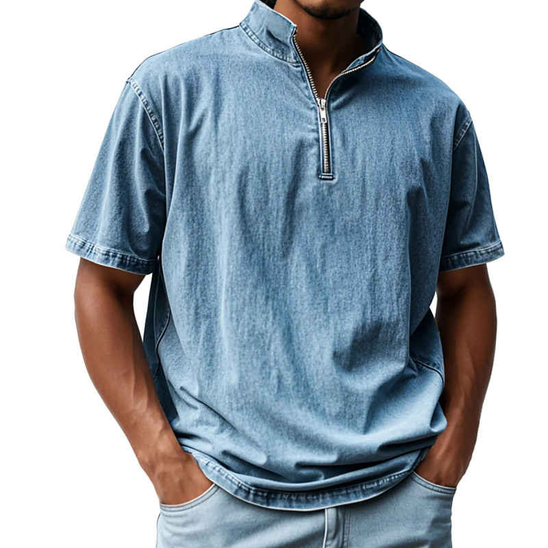 Men's Polo Polo Shirts Vacation Street Quarter Zip Short Sleeve Vintage Fashion Solid Color Zipper Summer Spring Regular Fit Blue Black Pink Navy Blue Purple Brown Polo