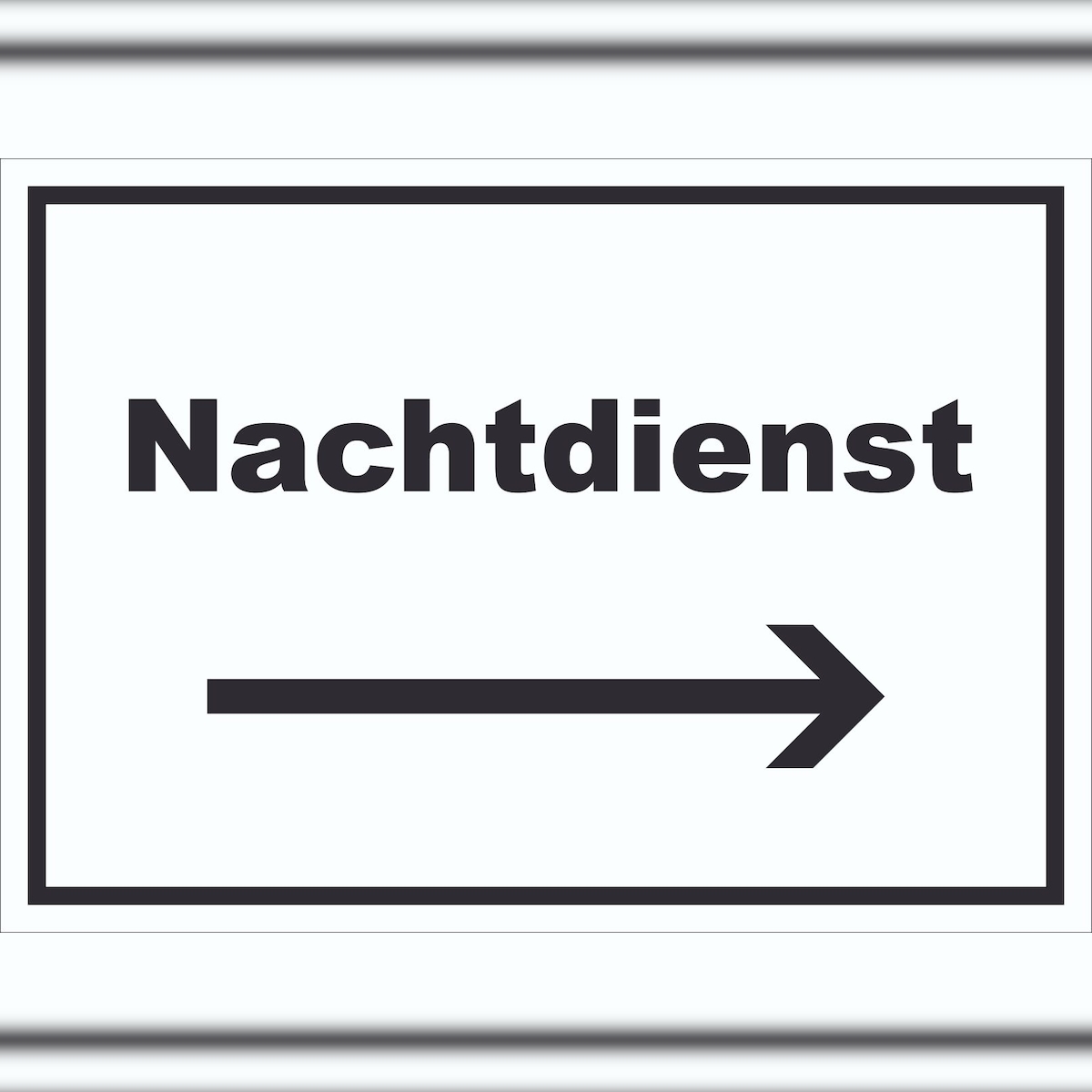 HB-Druck Nachtdienst Schild mit Text und Richtungspfeil rechts Nachtschalter waagerecht A5 Rückseite selbstklebend
