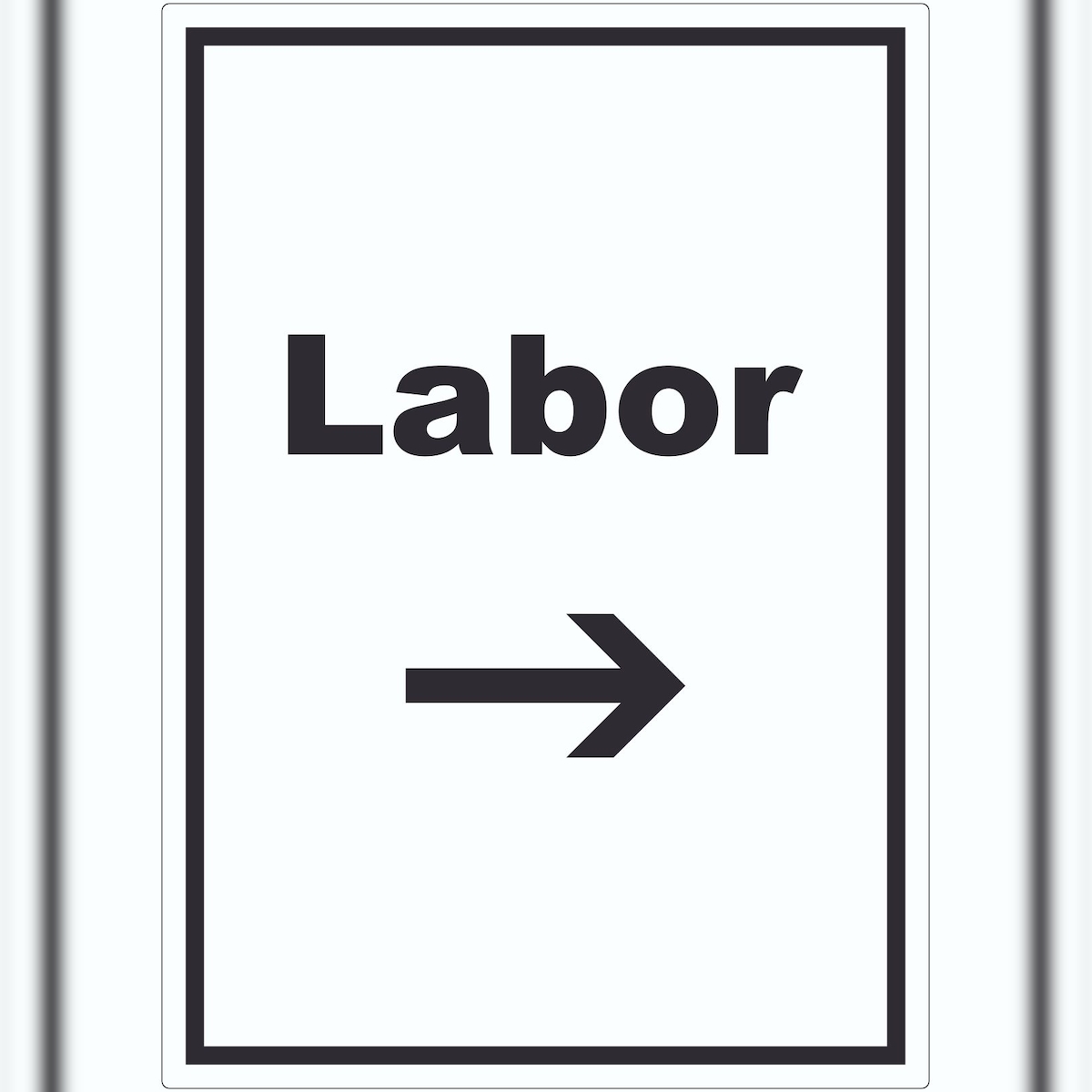 HB-Druck Labor Aufkleber mit Text und Richtungspfeil rechts untersuchen forschen hochkant A2 (420x594mm)