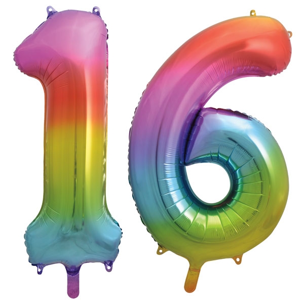 XL Folienballon Regenbogen Zahl 16