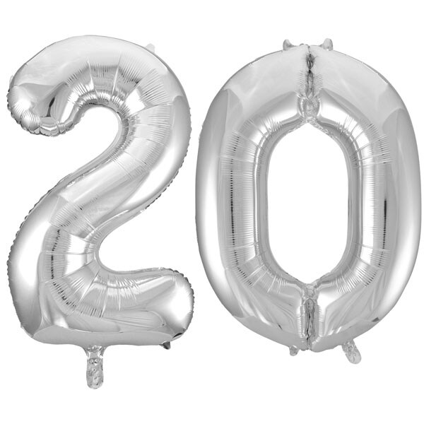 XL Folienballon silber Zahl 20