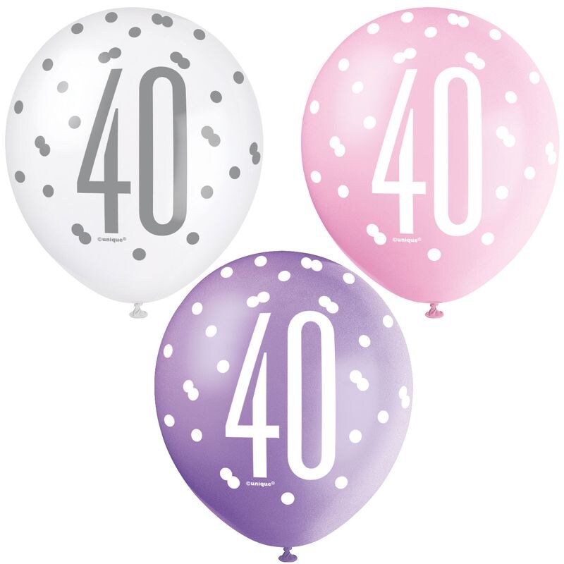 6 Luftballons rosa & silber Zahl 40
