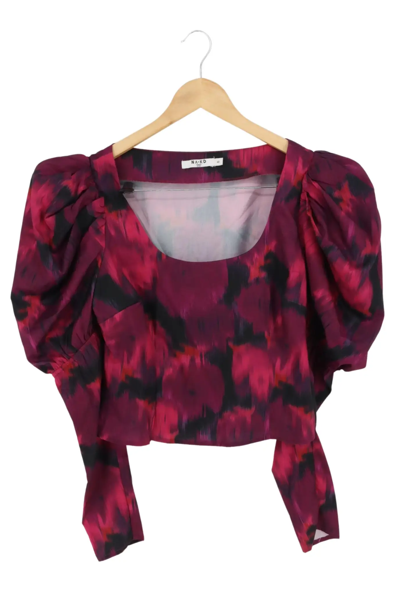 NA-KD Bluse Damen Gr. 40 Rot Schwarz Kurzarm Rüschen Elegant