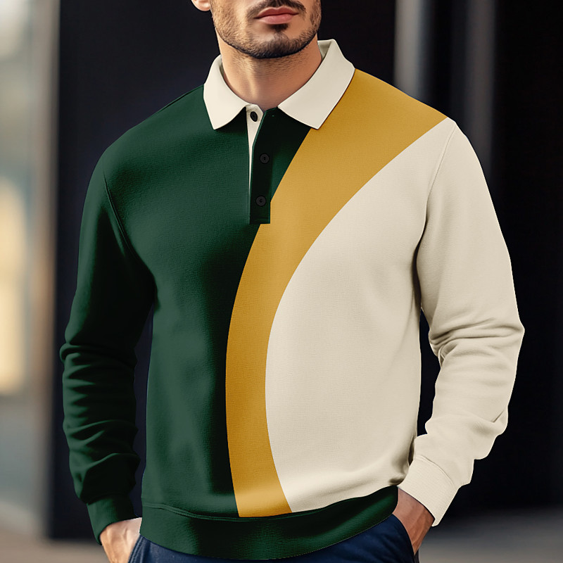 Men's Geometic Line Polo Long Sleeve Polo Shirts Lapel Business Casual Athleisure Daily Wear 3D Print Buttons Spring Fall Winter Red Blue Green
