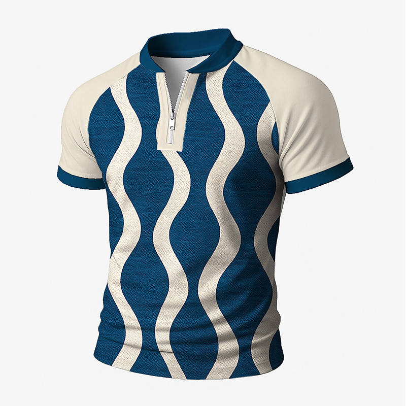 Men's Geometic Line Zip Polo Short Sleeve Stand Collar Business Modern Leisure Business Athleisure Casual Daily Zipper 3D Print Summer Robin's Egg Blue Green Red