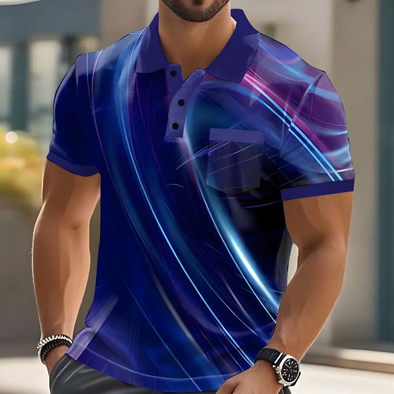 Men's Geometic Line Polo Short Sleeve Polo Shirts Collared Shirts Casual Outdoor Athleisure Daily Wear 3D Print Buttons Summer Spring Blue Red Purple