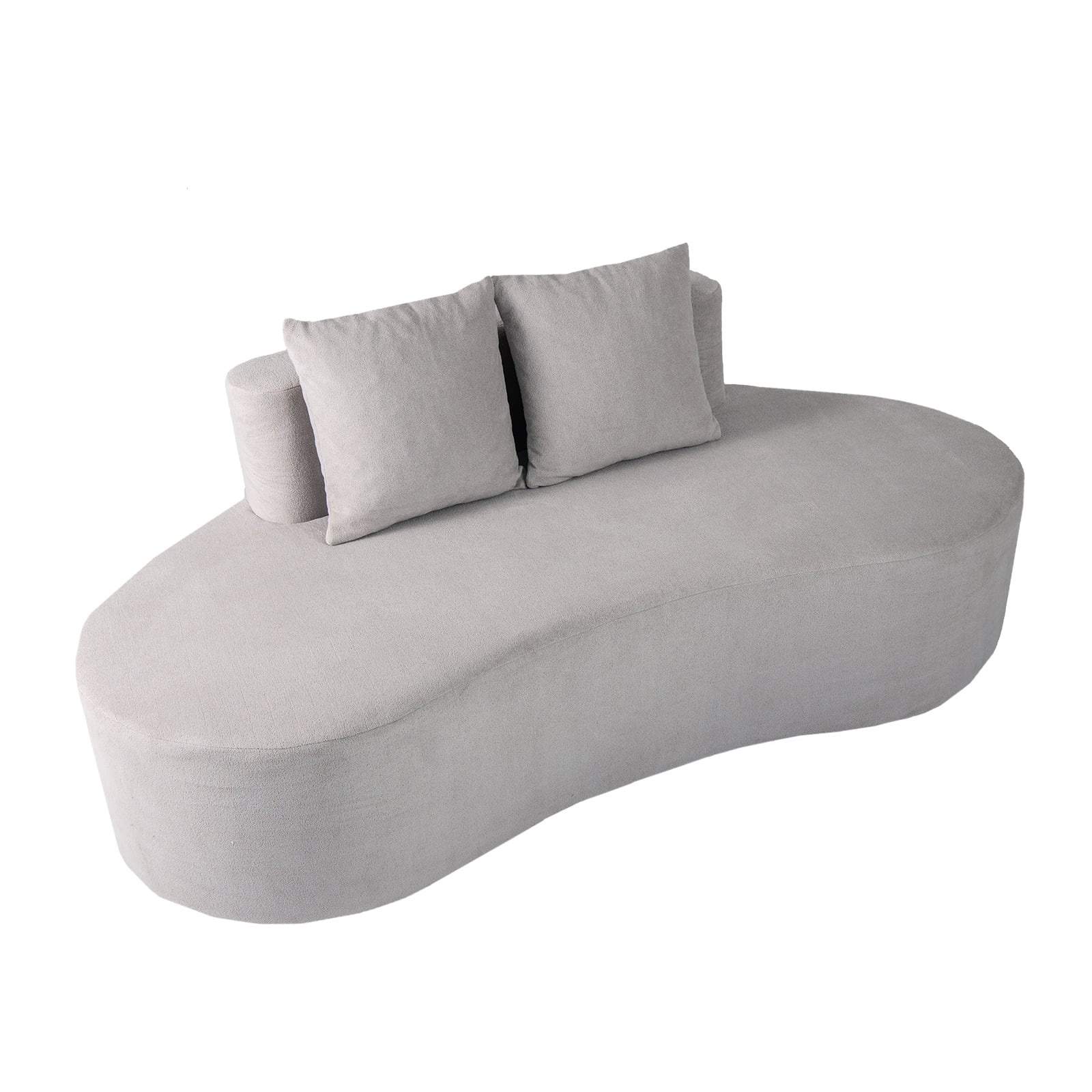 Kaareva harmaa vuodesohva – 199 cm, 2 tyynyä, ei tarvitse koota