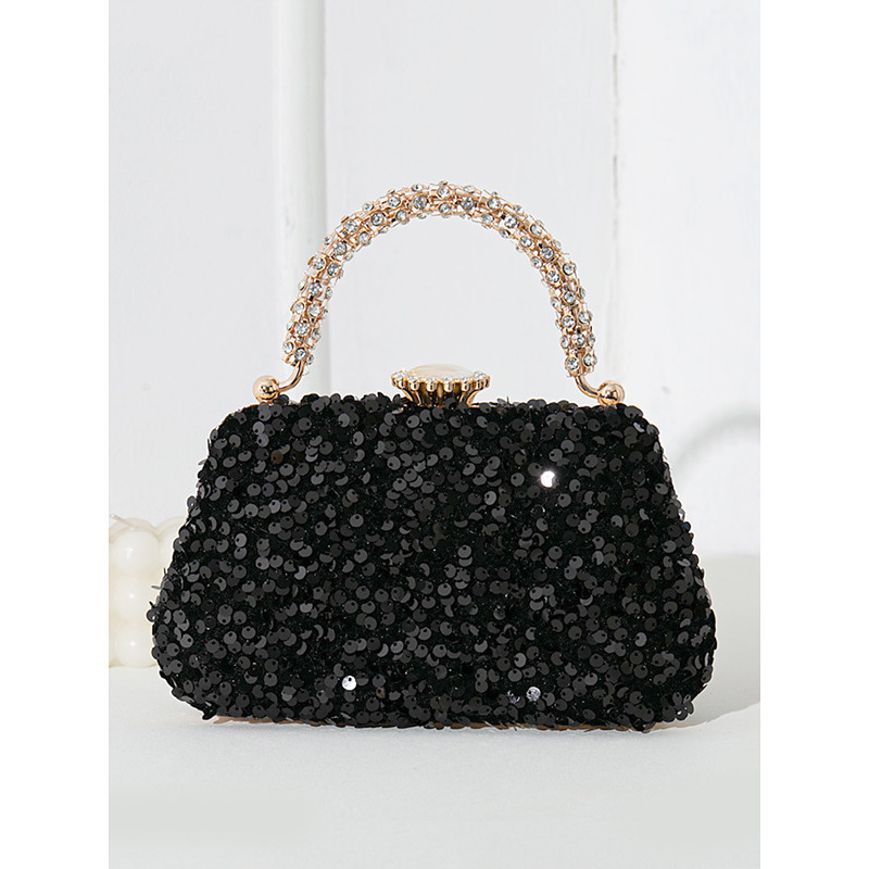 Women's Sequin Embellished Evening Clutch Bag – Vintage Glitter Handbag with Rhinestone Handle, Perfect for Weddings, Parties and Formal Events