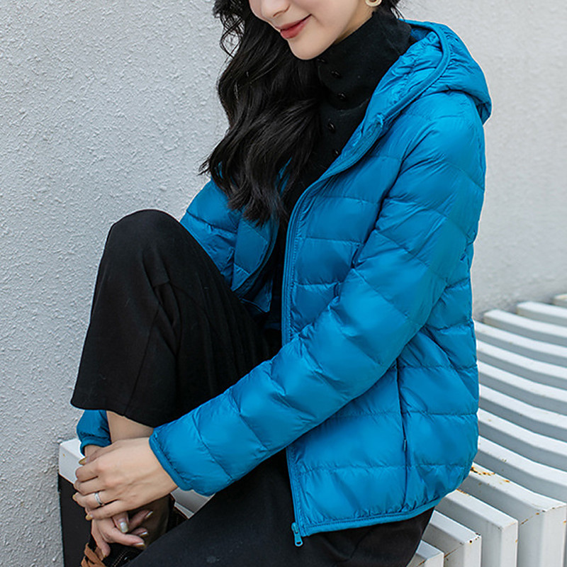 Women's Down Jacket Puffer Jacket Quilted Jacket Warm Comfortable Zipper Pocket Fashion Casual Plain Street Daily Wear Going out Zipper Regular Hooded Regular Fit Long Sleeve Outerwear Black White