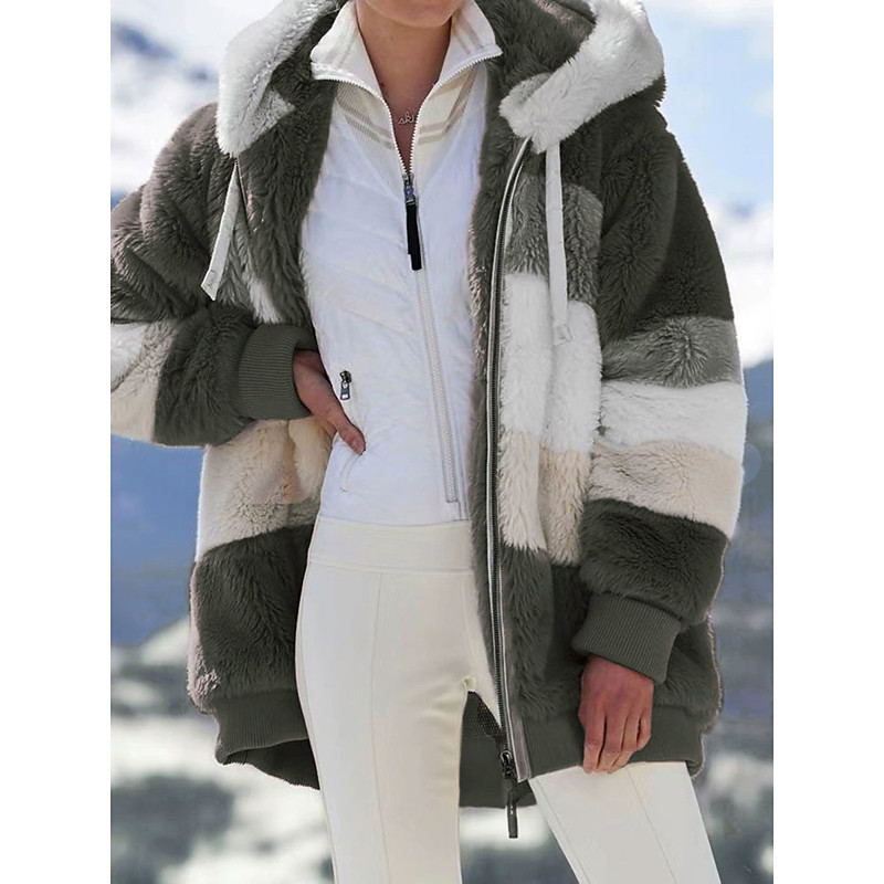 Women's Sherpa Jacket Comfortable Breathable Patchwork Zipper Casual Color Block Vacation Street Casual Daily Wear Zipper Regular Hooded Regular Fit Long Sleeve Outerwear Black Red Blue Spring Fall