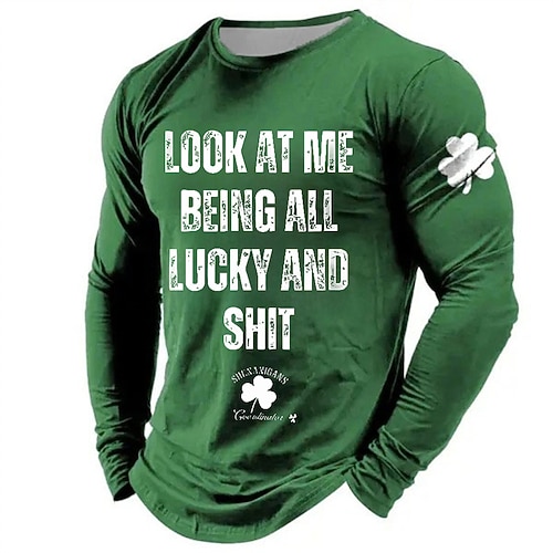 San Patrizio Per uomo Trifoglio Irlandese fortunato Maglietta Manica Lunga maglietta Stampa 3D Girocollo Camicia Designer Casual Feste Ferie Club Nero Blu Verde Estate Primavera Abbigliamento S M L