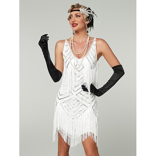 Anni Ruggenti Anni 1920 Lunghezza al ginocchio Abito Flapper Maniche corte Il grande Gatsby Paillettes Frange Scollo a V Costume Per donna Natale Carnevale Mascherata Festa a tema retrò Danza