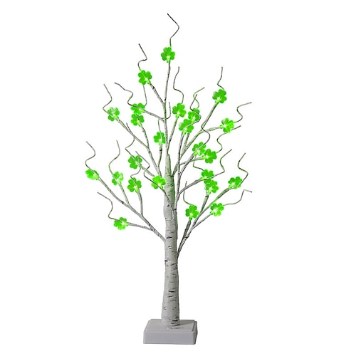 Alberi di betulla illuminati a LED per il giorno di San Patrizio con trifogli artificiali, decorazioni da tavolo pre-illuminate, centrotavola a tema irlandese per decorazioni da tavola per feste al