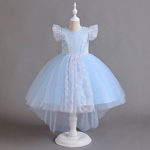 Abito da damigella d'onore bambina Ragazze Abito formale Abiti da sposa Feste Matrimonio Formale Adorabile Principessa Bello Patchwork Rete Tinta unica Maniche Corte Girocollo Blu Rosa Dai 4 anni in