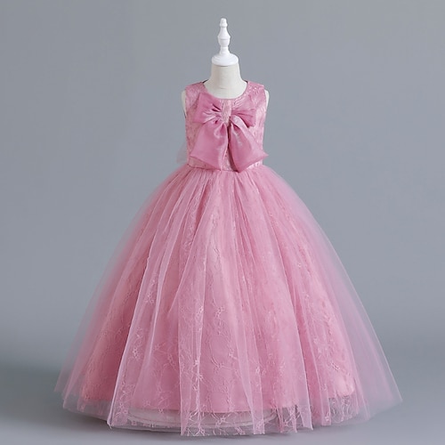 Abito da damigella d'onore bambina Da ragazza Vestito Vestito da festa Matrimonio Feste Giornaliero stile sveglio Da principessa Con ricami Con fiocco Farfalla Senza maniche Girocollo Bianco Rosa