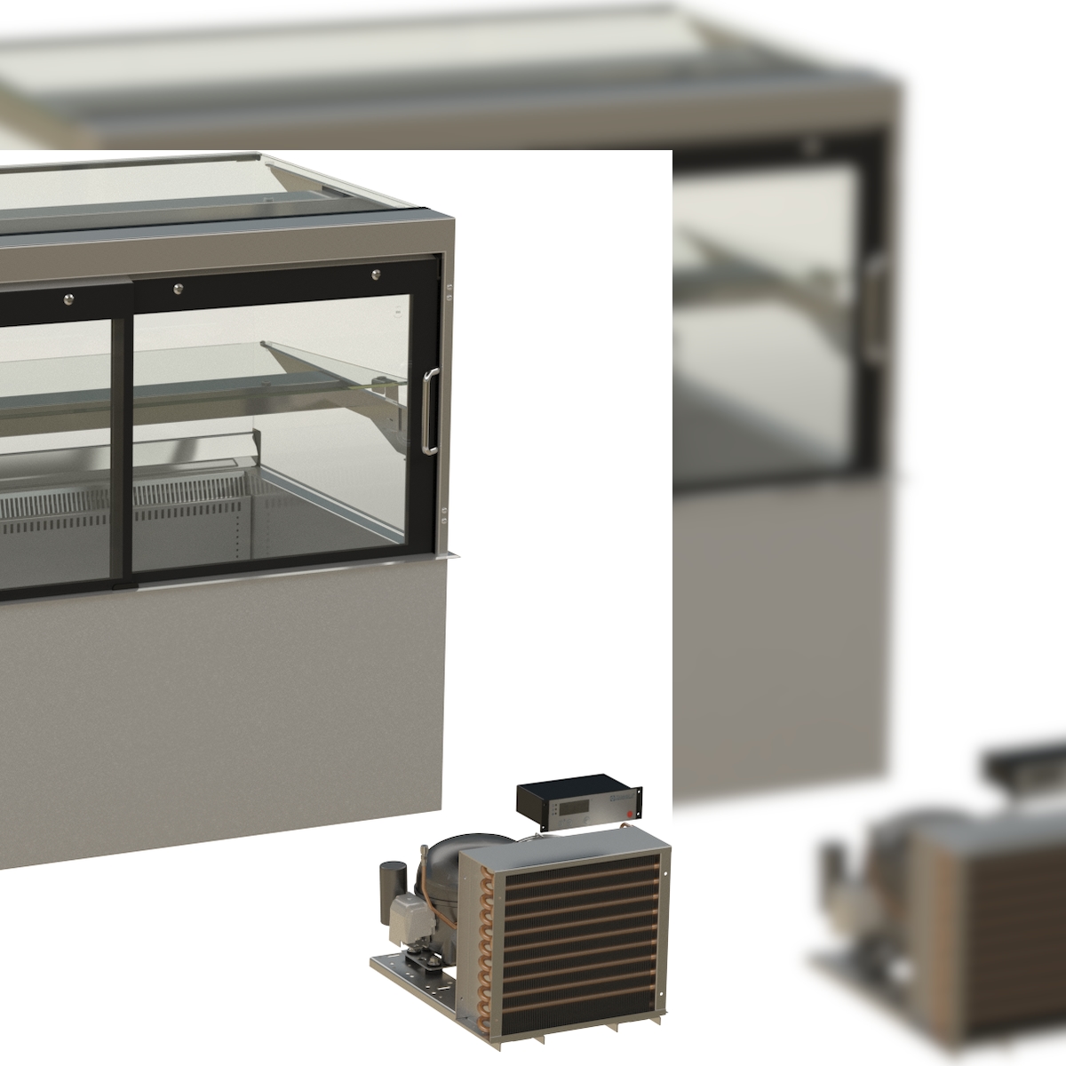 HAGOLA Showcase "Malmö" eckig, mit Tortenauszug, für 2 KB, 3 Auslagen. 920x710/265+410x778mm (BxHxT) steckerfertig mit Transporthalterung