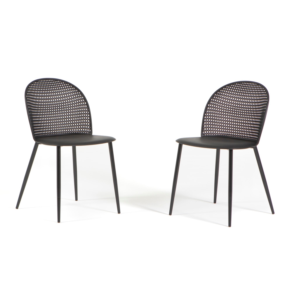 RATTATAN Set aus 2 Stühlen aus Polypropylen mit Metallbeinen, modernes Design,geflochtener Rückenlehne für Küche,überdachte Gärten,Bars,Restaurants IVY/Schwarz