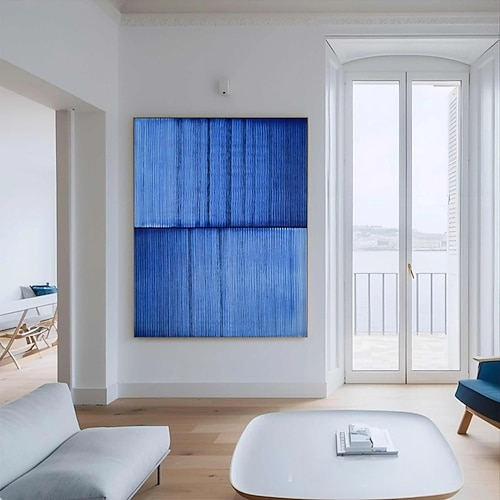 blaue minimalistische Malerei, blaue strukturierte Kunst, Boho-Malerei, blaue abstrakte Malerei, zeitgenössische minimalistische Wandkunst