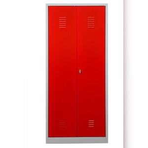 PROREGAL Garderobenspind Camel | 2-Fächer & 1-Schloss| HxBxT 180x80x50 cm | Vorhängeschloss | Grau-Rot