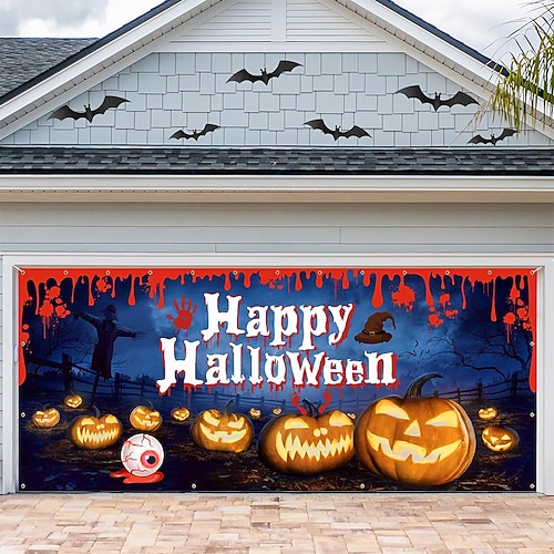 Halloween Copertura per porta del garage Grande appeso Zucca Macchie di sangue 3D Gotico punk oscuro Da serata All'aperto Sfondi di ripresa Yarda Casa infestata Decorazioni Parete Porta Sfondo