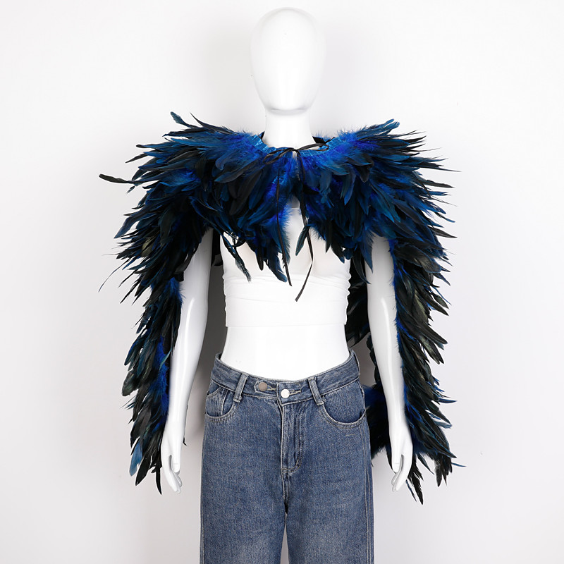 Women's Long Red Feather Cape Shawl with Ribbon Tie, Gothic Vampire Devil Costume Stole, Natural Feather Poncho Shrug