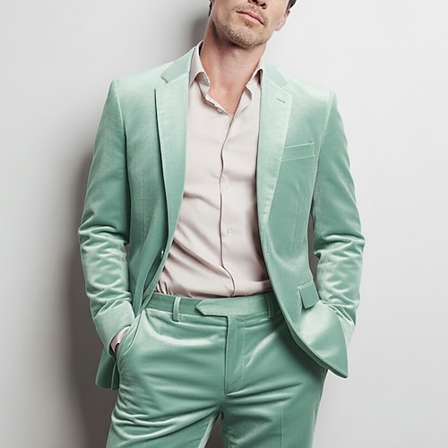 Uomo Feste Abito di velluto Bavero classico Giallo Borgogna Moda Festa Tinta unita Vestibilità su misura 2 pezzi Monopetto Due Bottoni