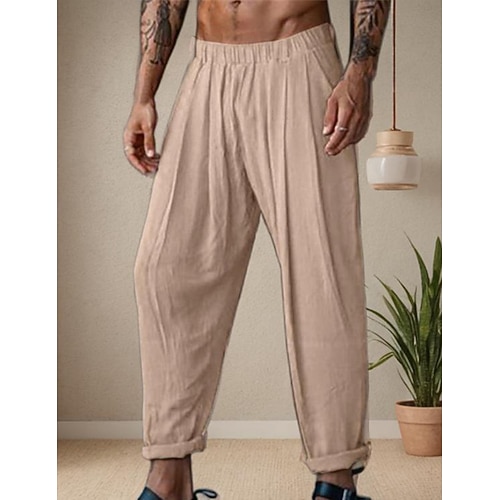 Per uomo Pantaloni di Lino Pantaloni Pantaloni Larghi Pantaloni da Spiaggia Coulisse Tasca Confezione multipla Semplice Comodità Traspirante Lunghezza intera Quotidiano Vacanza Elegante