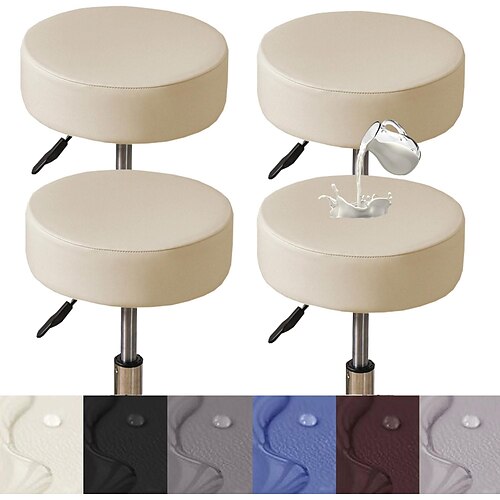 4er-Set dehnbare, wasserdichte Barhockerbezüge aus PU-Leder, runder Barhockersitzbezug mit Gummibändern