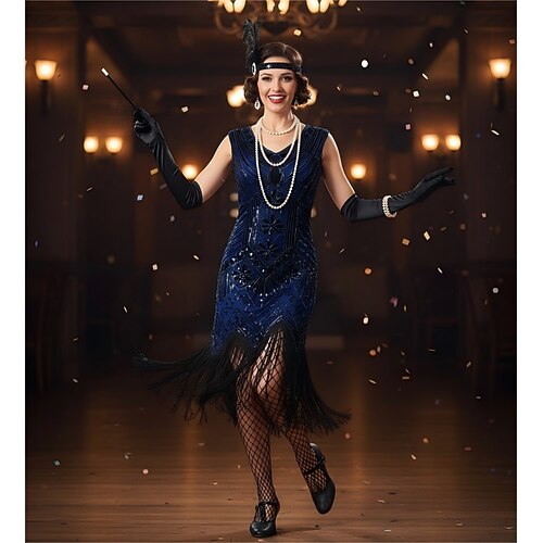 Retrò Vintage Anni Ruggenti Anni 1920 Abito Flapper Vestito Abiti Il grande Gatsby Paillettes Frangia con nappe Costume Per donna Festa / Sera Mascherata Adulti Vestito Guanti Calze Primavera