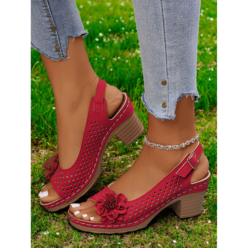 Women's Floral Cutout Slingback Sandals – Comfortable Chunky Heel Summer Sandals for Casual Garden Party Wear