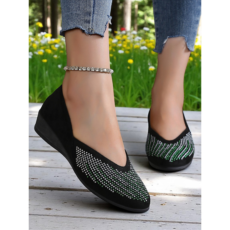 Women's Rhinestone Wedge Flats – Sparkly Comfort Shoes for Oktoberfest, Beer Garden Parties, and Festive Outdoor Events