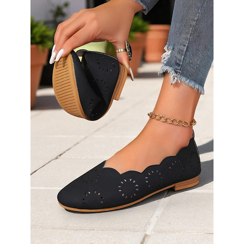 Women's Rose Pink Cutout Faux Leather Flats – Casual Shoes for Garden Parties and Everyday Comfort