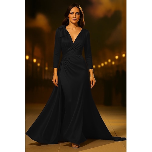 Linea ad A Lunghezza al pavimento Abito da Ballo Vestito da Festa Abito da Cocktail Abito da cerimonia per signora Manica 3/4 Scollo a V Elegante Formale Ferie Serata Formale Raso Elasticizzato con