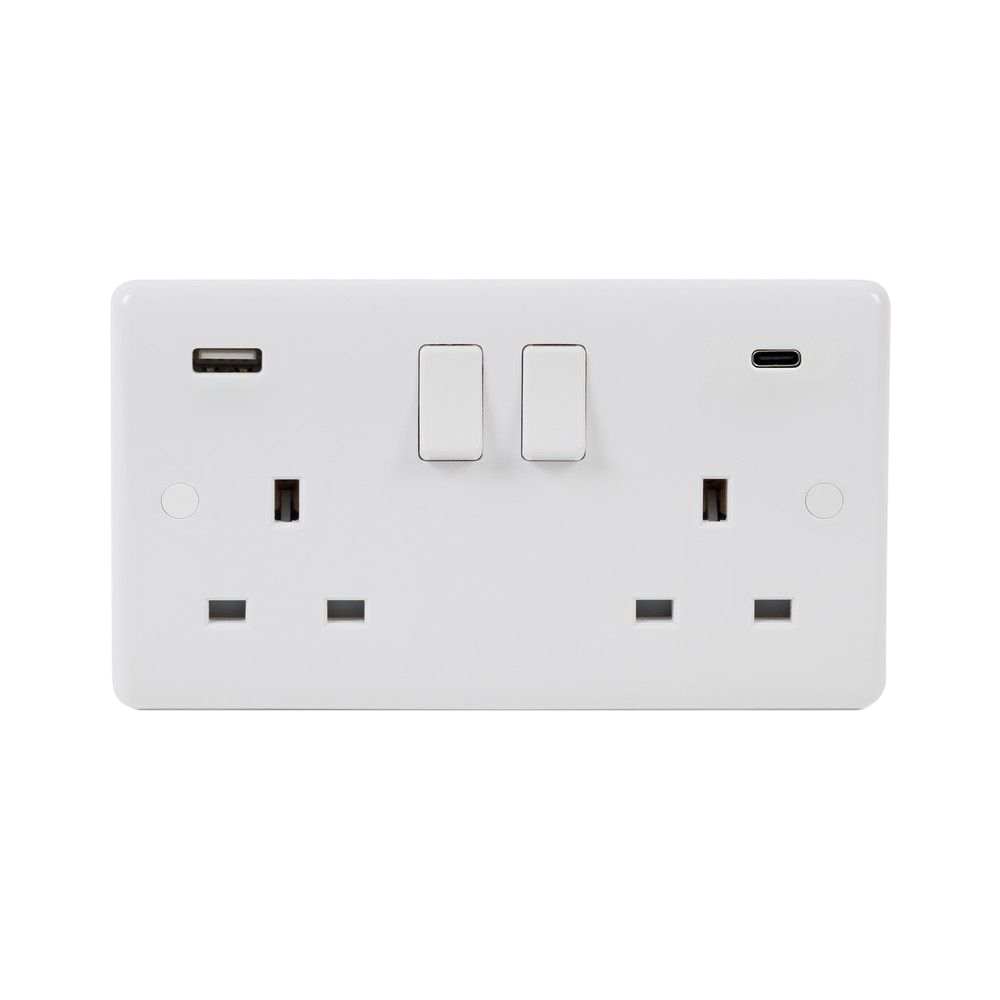 Lieber Silk White 2 Gang USB A+C Socket (13A Socket + 2 USB Ports A+C 3.1A) - Curved Edge - The Soho Lighting Company