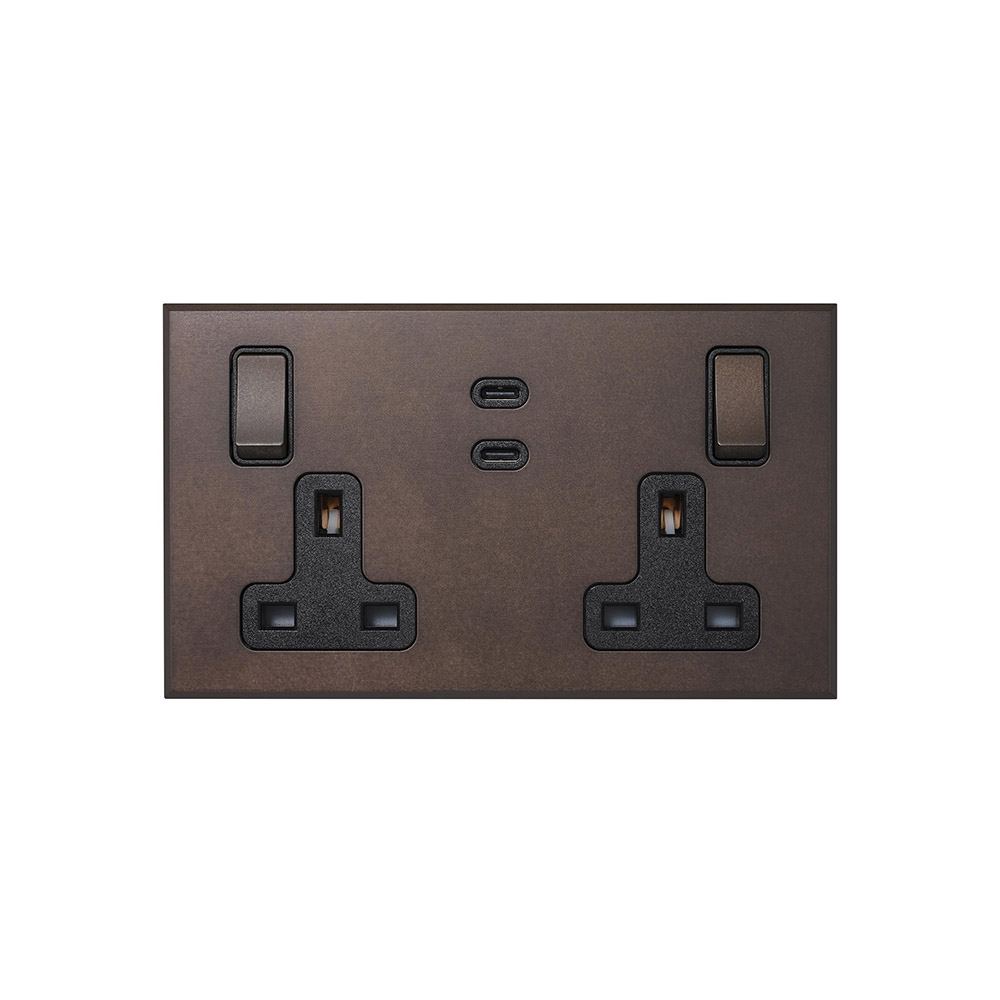 Soho Lighting Heritage Bronze 2 Gang 13A Switched Socket 65W Max PD C+C USB Charging with Black Insert - The Palaces Collection - Size: H 86mm x W 1