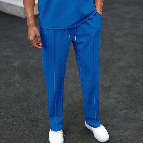 Herren Jogginghose Hose Gerade geschnittene Sweatpants Waffelhose Kordelzug Tasche Elastischer Bund Einfach Komfort Sport im Freien Täglich Mode Lässig Gelb Rosa Mikroelastisch