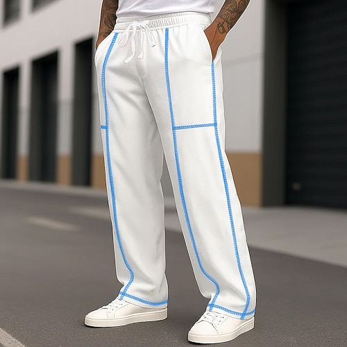 Herren Jogginghose Hose Gerade geschnittene Sweatpants Kordelzug Tasche Elastischer Bund Einfach Komfort Sport im Freien Täglich Mode Lässig Schwarz Weiß Mikroelastisch