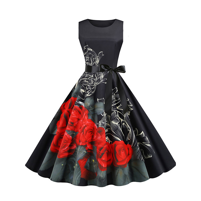 Women's Midi Dress Sundress Shift Dress Vacation Casual Boho Party Beach Floral Graphic Sleeveless Crewneck Black Green Blue White Pink Red Summer Spring