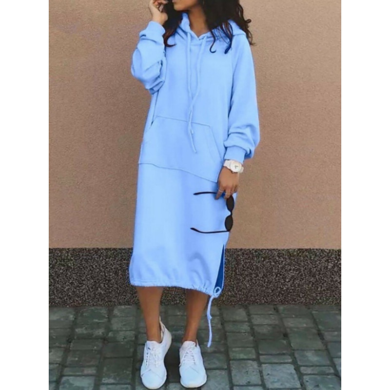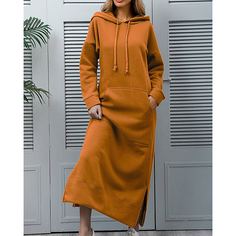 Women's Midi Dress Hoodie Dress Fashion Modern Daily Office Going out Regular Fit Plain Long Sleeve Hooded Black Wine Purple Orange Spring Fall Winter