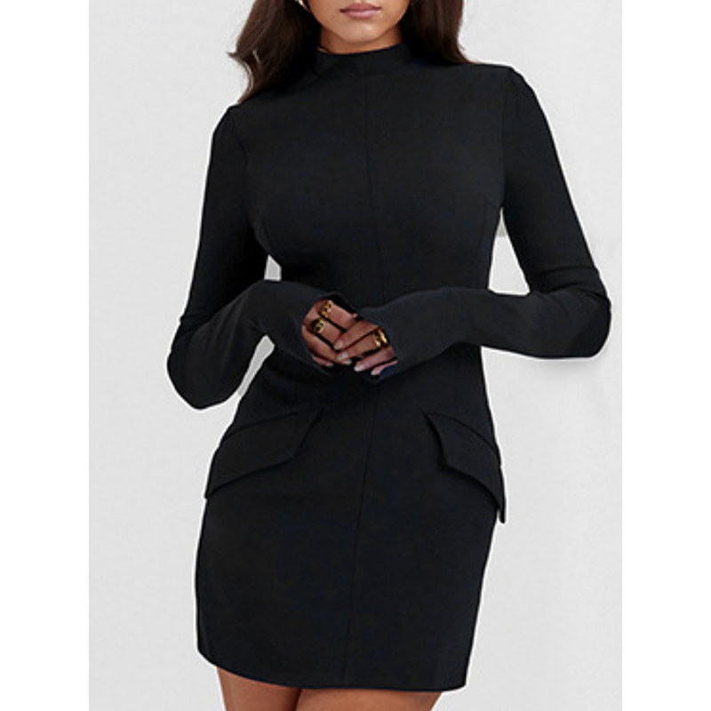 Women's Midi Dress Blazer Dress Bodycon Dress Work Dresses Semi Formal Office Slim Plain Long Sleeve Shirt Collar Black White Wine Navy Blue Spring Fall Winter