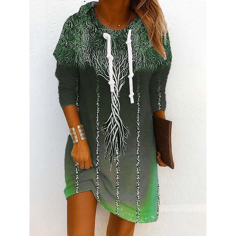 Women's Mini Dress Crew Neck Long Sleeve Casual Dress T Shirt Dress Tee Dress A Line Dress Casual Regular Fit Floral Graphic Scoop Neck Black Blue Purple Green Spring Fall Winter