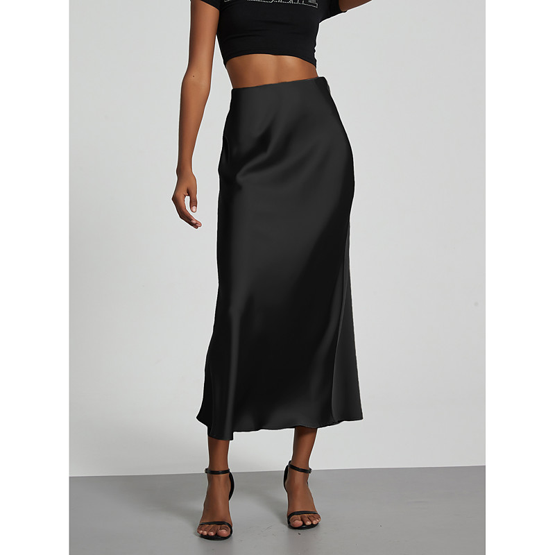 Women's Skirt A Line Elegant Fashion Midi High Waist Skirts Plain Print Micro-elastic Street Date Camel Pink Fuchsia Dark Blue Spring Polyester
