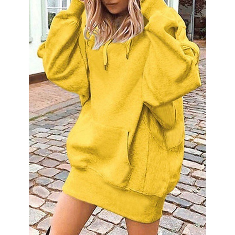 Women's Mini Dress Shift Dress Casual Vacation Going out Loose Fit Solid Color Long Sleeve Hooded Yellow Wine Blue Gray Spring Fall Winter