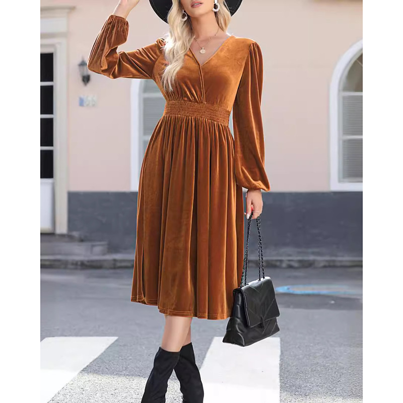 Women's Midi Dress Ruched Dress Modern Daily Outdoor Going out Regular Fit Plain Long Sleeve V Neck Black Wine Purple Brown Spring Fall