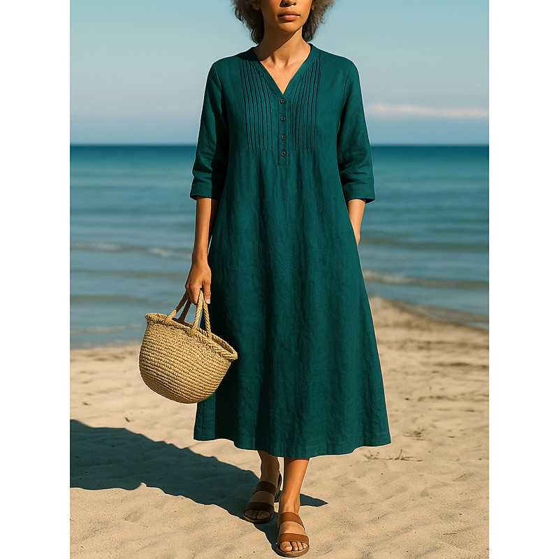 Women's Midi Dress Sundress Shift Dress Vacation Casual Boho Daily Beach Holiday Plain 3/4 Length Sleeve V Neck Blue Orange Green Summer Spring
