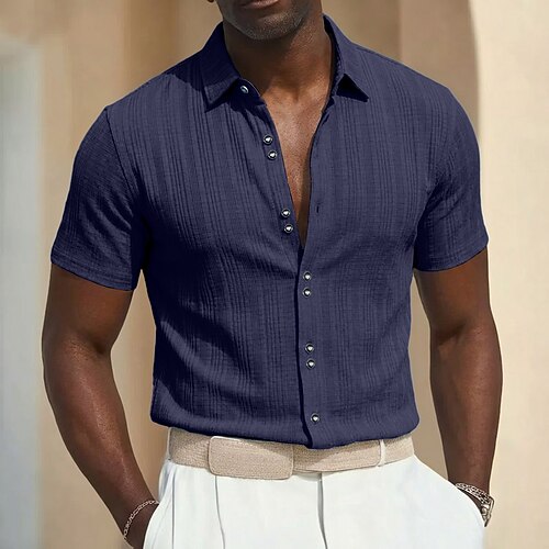 Per uomo Camicia Camicia casual Camicia da Spiaggia Camicia con Bottoni Camicia Jacquard Blu Nero Bianco Blu marino Kaki Manica Corta Semplice Bavero Casuale Abbigliamento casual alla moda Bottoni
