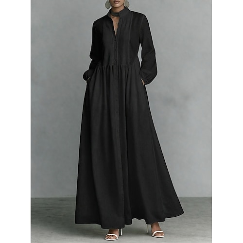 Per donna Abito lungo Abito lungo Abito chemisier Abito casual Abito estivo Moda Informale Da mare Giornaliero Appuntamento Standard Liscio Manica lunga Bavero Nero Bianco Rosso Viola Estate Primavera