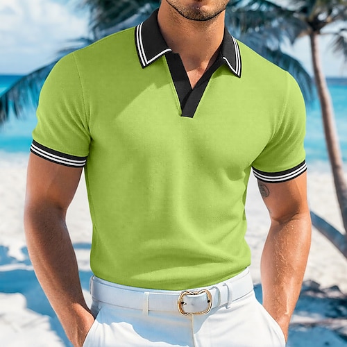 Per uomo Polo Sportivi Maglia da golf Casuale Colletto Polo a Coste Manica Corta Moda Essenziale Tinta unica Patchwork Estate Vestibilità regolare Nero Bianco Rosso Blu Verde Polo Sportivi