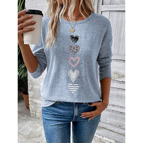 Per donna Maglietta Cuore Grafico Vintage Moda Elegante Manica Lunga Girocollo Top Regolari Quotidiano Weekend Stampato Nero Bianco Rosa Blu Primavera Autunno Inverno