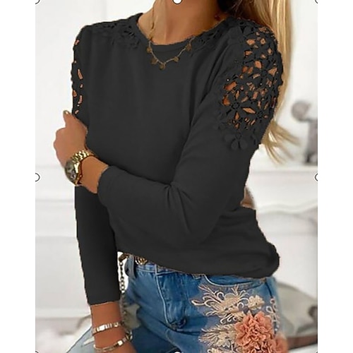 Per donna Blusa Semplice Elegante Casual Manica Lunga Girocollo Top Regolari Quotidiano Ferie Uscire Traforato Nero Verde Grigio Autunno Inverno